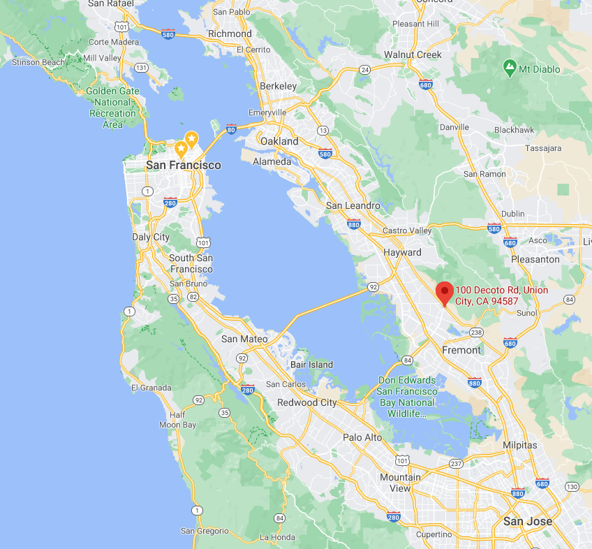 Union City is a small city of about 75,000 central to Oakland, San Francisco, and San Jose.