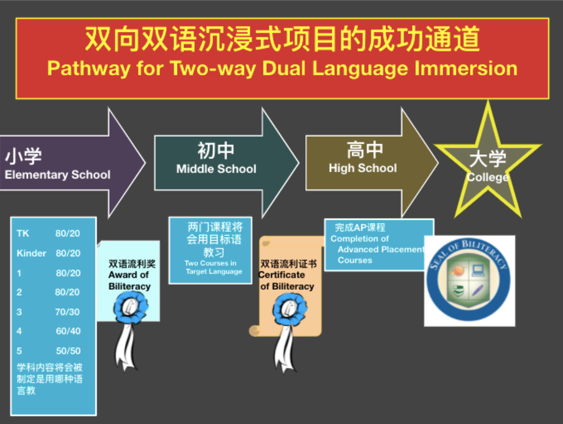 The program will use simplified characters and begin at 80 of the school day in Mandarin, 20% in English. That will gradually decline to 50/50% by 5th grade.