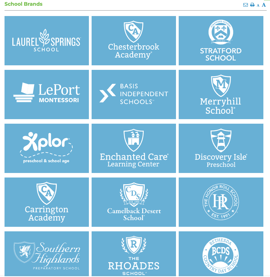 Spring Education Group consists of 28 “school brands” at least two of which, Stratford and L’Etoile French Immersion School in Portland, Oregon, offer immersion.